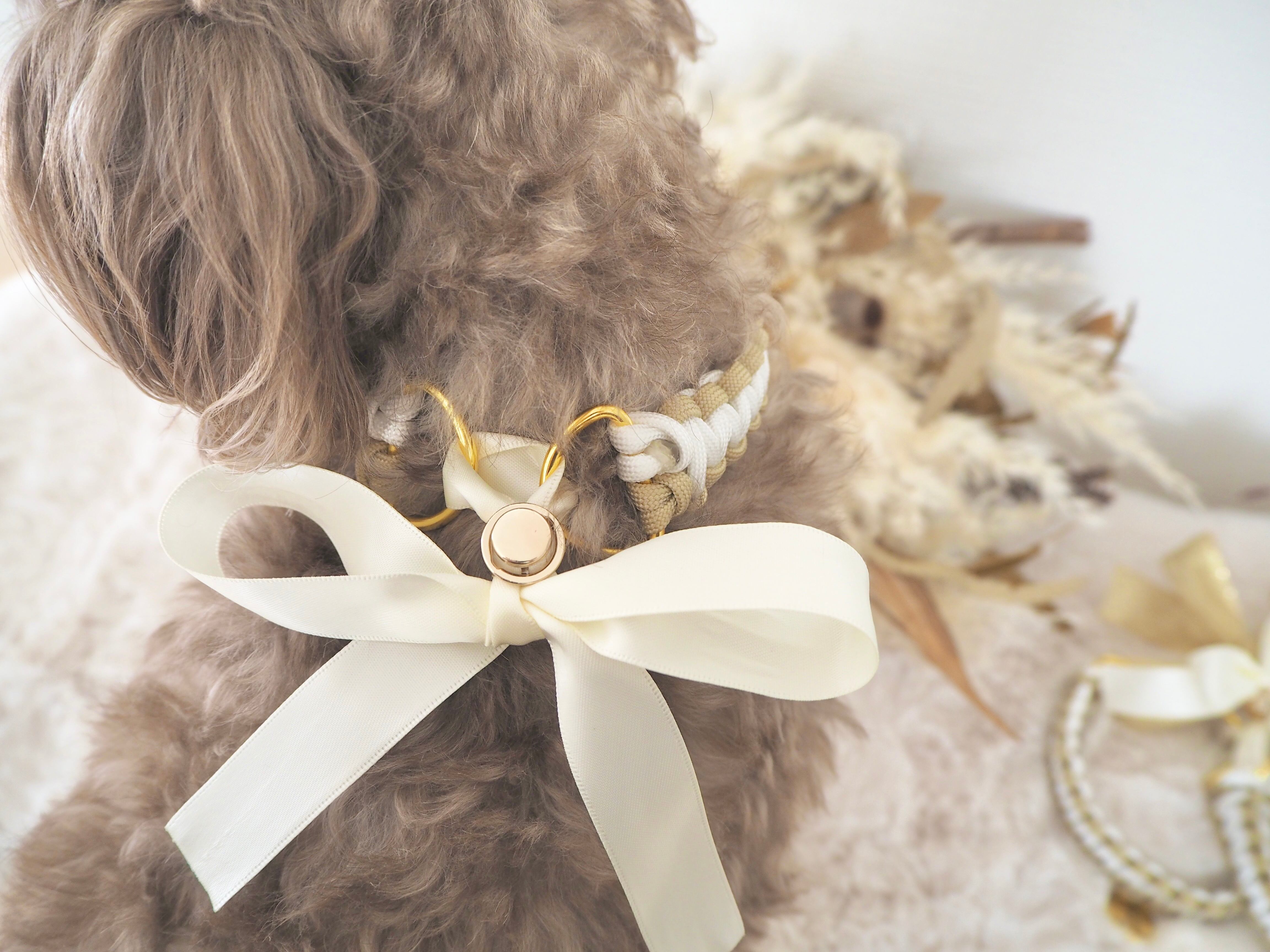 ハーフチョークのようにリボンで長さを調節できる首輪です